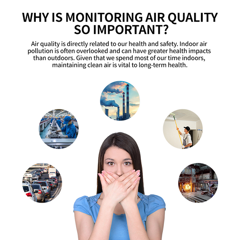 The device features a user-friendly interface that clearly displays all metrics for instant interpretation. Its portable design is lightweight and compact, making it easy to carry for use in various settings. This wide application makes it ideal for monitoring air in homes to ensure family health, in offices to boost productivity, in schools to safeguard students, and even outdoors during activities like camping.