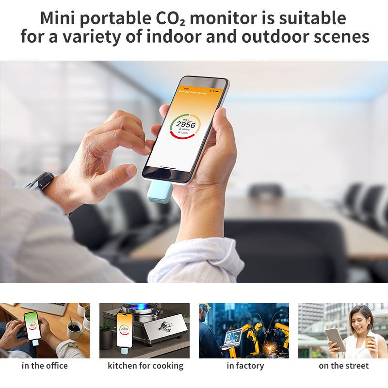 Mini carbon dioxide (CO2) detector is a high-precision, portable device designed for real-time monitoring of CO2 concentrations in the environment. Equipped with advanced sensor technology, it delivers accurate CO2 readings, allowing users to access data anytime via a dedicated app. This ensures a healthy and safe living and working environment.